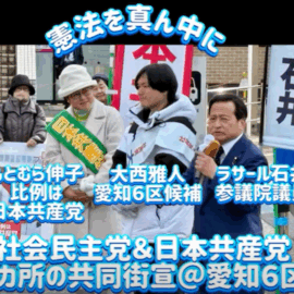 2月5日(木)の愛知県での街頭演説の日程をお知らせいたします。(スタッフ) ぜひお誘い合わせてご参加ください。 🔹8:00〜豊田市駅前ロータリー 🔹9:00〜三河豊田駅前ロータリー 🔹11:00〜メグリア井 ... 続きを読む →