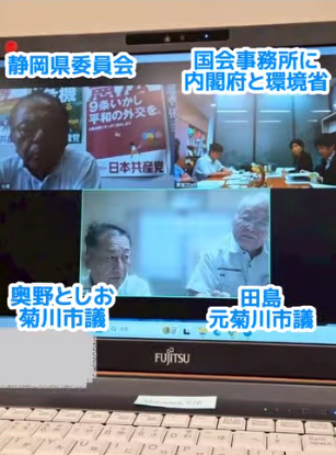 奥野としお菊川市議、田島ちかお元菊川市議とともに、更に被害を拡大させないために大きな木の伐採、廃棄にかんし、国の支援を求めました。