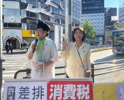金山総合駅前で朝の宣伝🎤