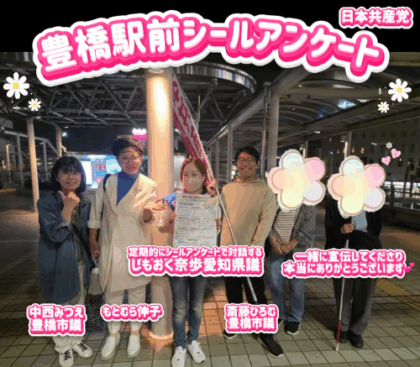 しもおく奈歩愛知県議は、定期的に豊橋駅前に立ち、シールアンケートで、この間、たくさんの皆様と対話を続けています。