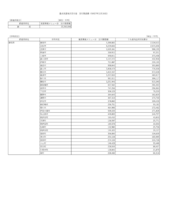 重点支援地方交付金の愛知県、岐阜県、静岡県、三重県の限度額です。