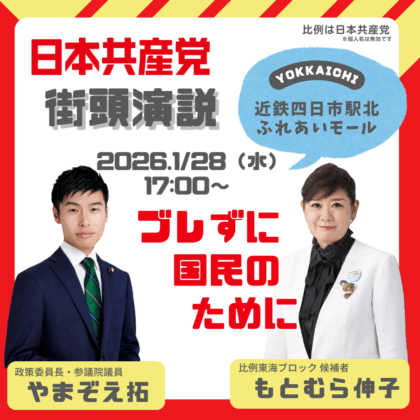 1月28日の岐阜県と三重県での街頭宣伝の日程をお知らせいたします。(スタッフ)