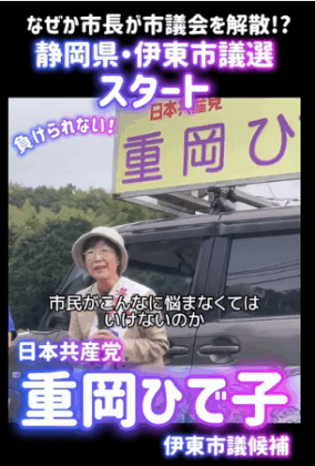 静岡県伊東市で始まった市会議員選挙 重岡ひで子 市議候補をなんとしても勝たせたいと出発式に多くの皆様が駆けつけました。私も山田なおし東伊豆町議はじめ地方議員団とともに熱烈応援 田久保真紀市長の学歴詐称疑惑に全会一 ... 続きを読む →