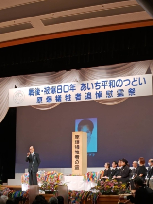 「戦後・被爆80年 あいち平和のつどい 原爆犠牲者追悼慰霊祭」に参列しました。 しもおく奈歩愛知県議、すやま初美党県副委員長とともに黙祷し、献花をしました。 広島、長崎の被爆者の方々が、高齢になり、一人、また一人 ... 続きを読む →