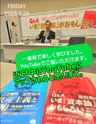 今日は、志位議長にQ&A『いま「資本論」がおもしろい』について、労働者、搾取、変える展望などお話いただきました。 近日中に日本共産党のYouTube チャンネルにアップされると思います。 特に『資本論』の「搾取」の部分を ... 続きを読む →