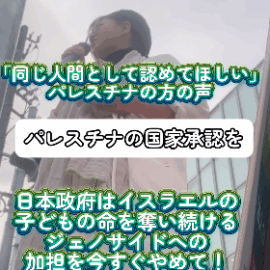 パレスチナの方から「同じ人間として認めてほしい。国家を持つに値する人間なのだと認めてほしい」との声を伺いました。9月22日月曜日、朝の金山総合駅前の宣伝でイスラエルの蛮行・ジェノサイドをやめさせるためにも日本政府もパレス ... 続きを読む →