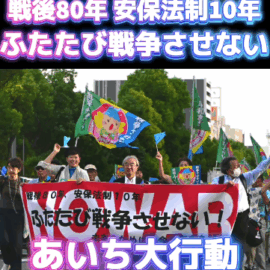 「戦後80年 安保法制10年#ふたたび戦争させない#あいち大行動」の集会とデモに参加しました。平和憲法を守る立憲野党が参加。私も参議院選挙で大奮闘したすやま初美さん、鈴木こういちさん、坂林たくみ日進市議、えがみ博之元 ... 続きを読む →