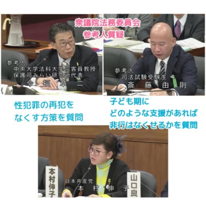 衆院法務委員会は12月3日、社会復帰・再犯防止に向けた矯正・更生保護行政の課題について参考人質疑を行いました。