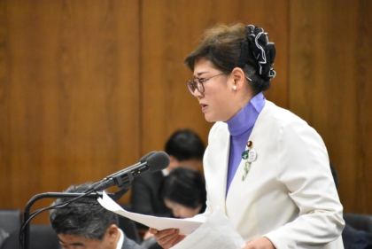 さらに、日本被団協が11月20日に発表した声明を示し、高市内閣が与党内で非核三原則の見直し議論を開始することについて、「『ふたたび被爆者をつくるな(ノーモア・ヒバクシャ)』は、わたしたち被爆者のいのちをかけた訴えです。核兵器は絶対に許してはなりません」と強く抗議している内容を紹介しました。